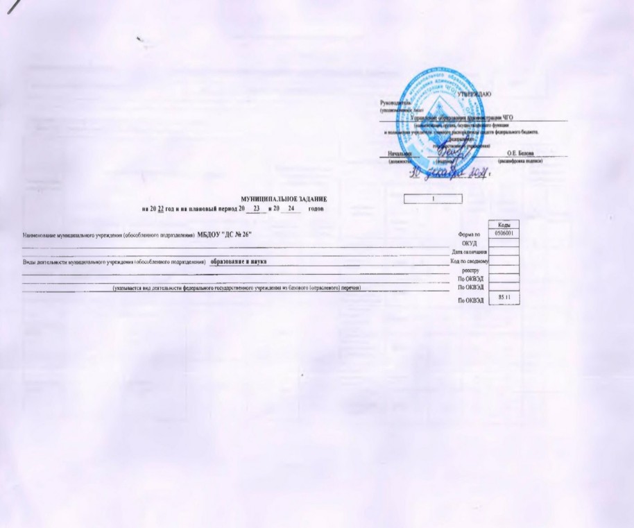 Муниципальное задание на 2022 год и плановый период 2023 и 2024 годов