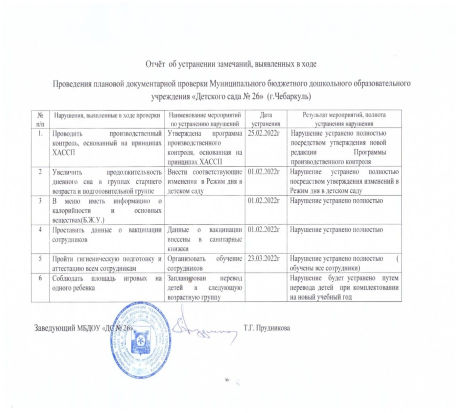 Отчёт об устранении замечаний, выявленных в ходе проверки,