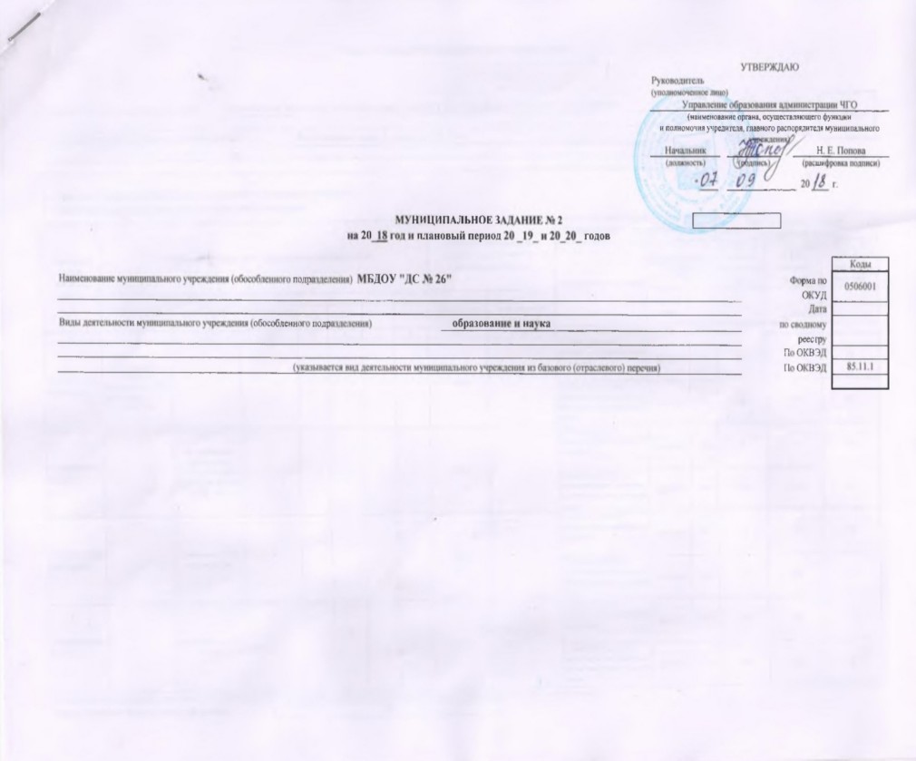 Муниципальное задание на 2019 год и на плановый период 2020 и 2021 годов